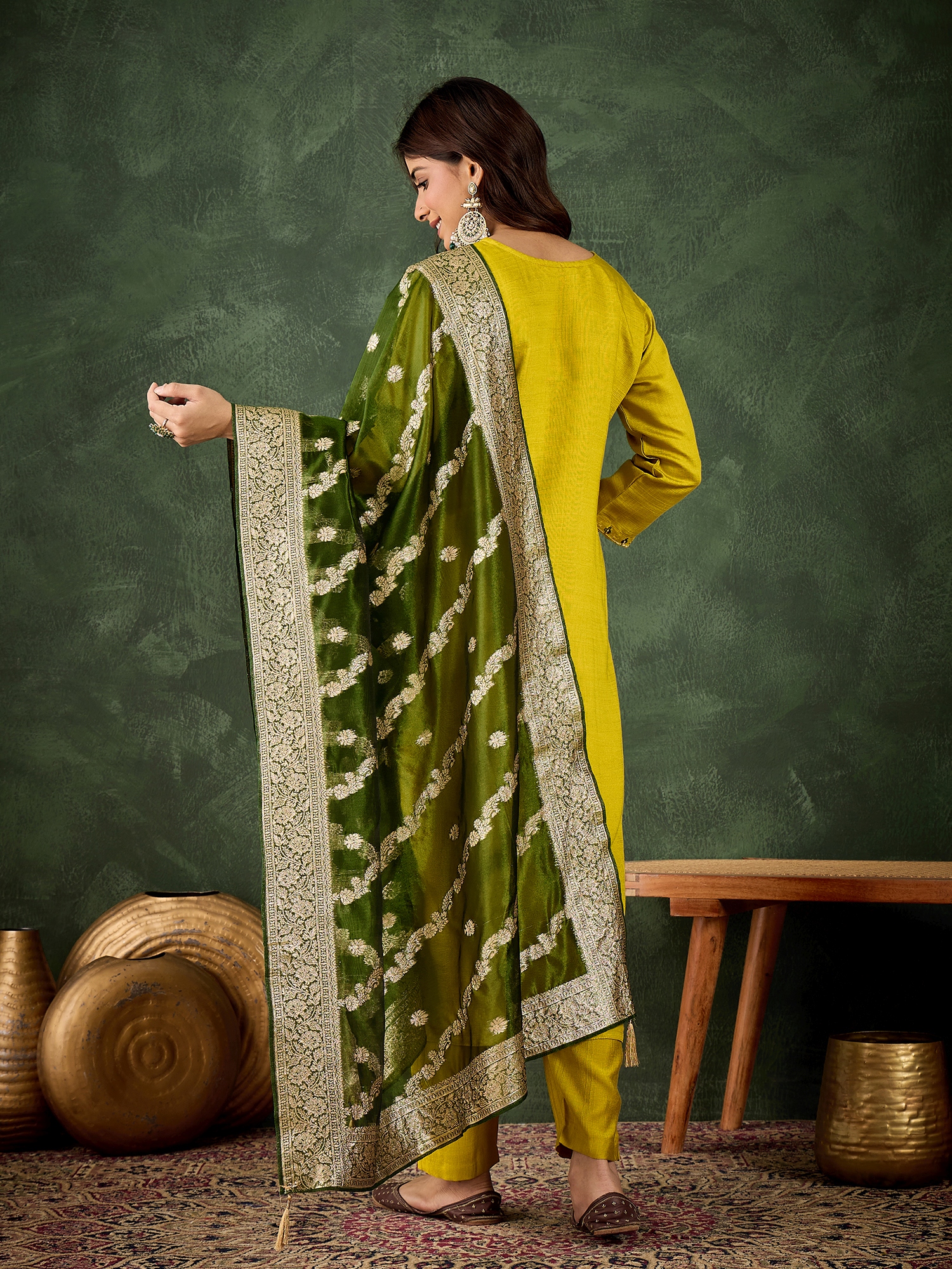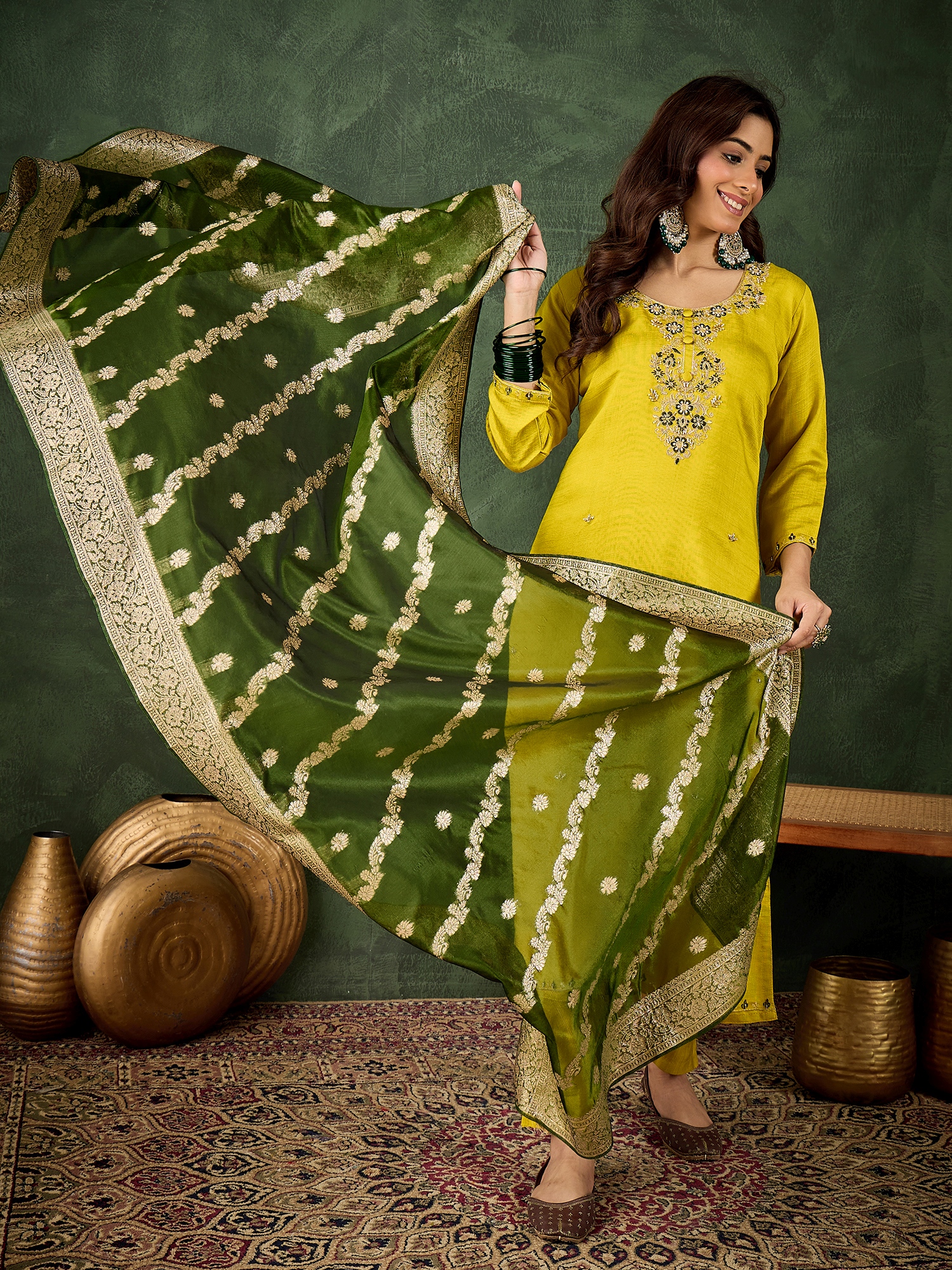 Lemon Color Smart Viscose Rayon Fabric Designer Embroidery Work Ceremonial Kurta Set