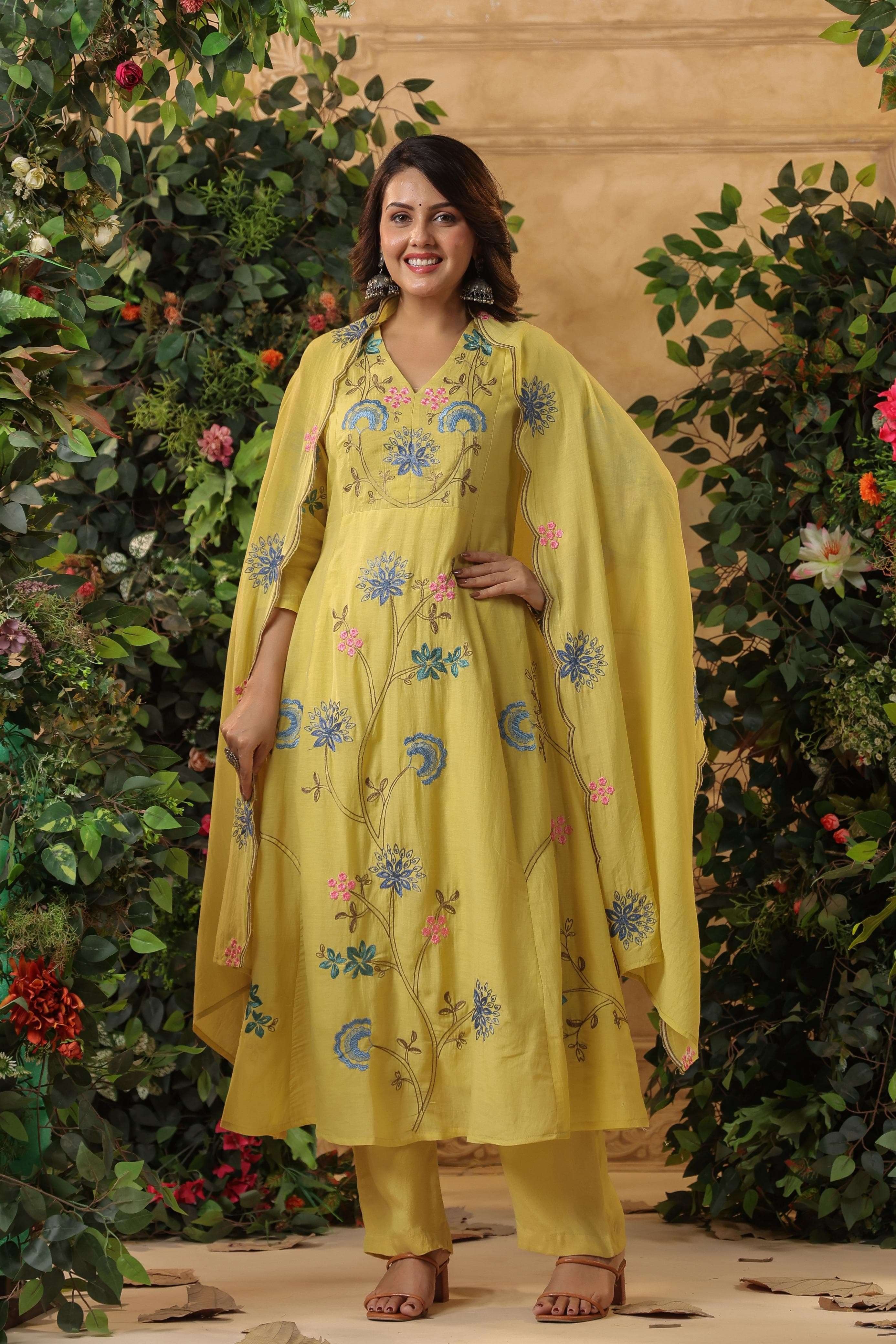 Lemon Color Viscose Chanderi Fabric Ethnic Reaymade Kurta Set With Dupatta