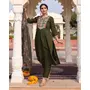 Mahendi Color Cotton Silk Fabric Designer Embroidered Heavy Ceremonial Wear Salwar Kameez