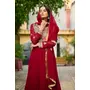 Maroon Color Faux Georgette Fabric Ethnic And Ceremonial Partywear Gown With Dupatta