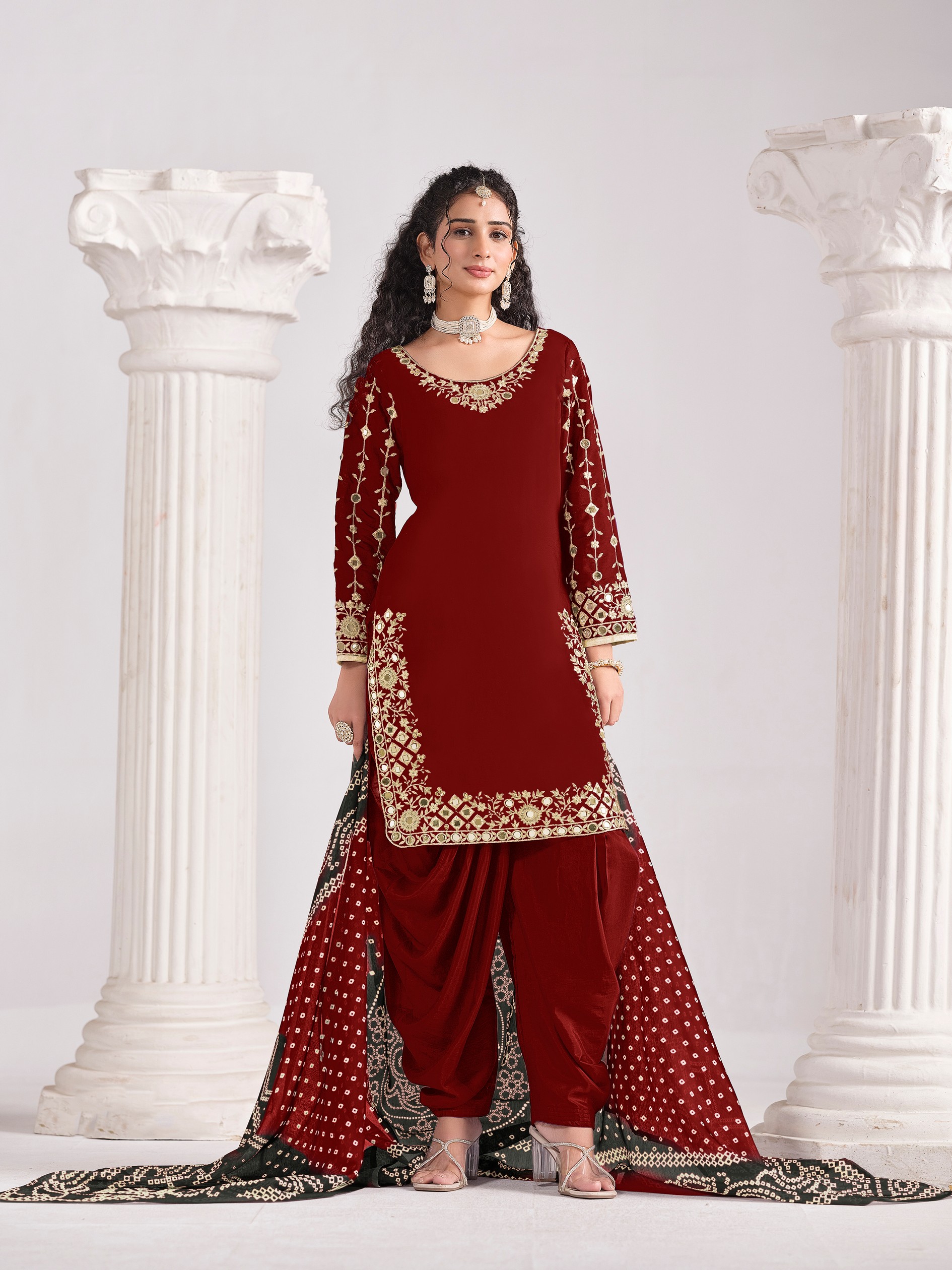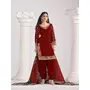 Maroon Color Roman Silk Fabric Designer Embroidered Suit