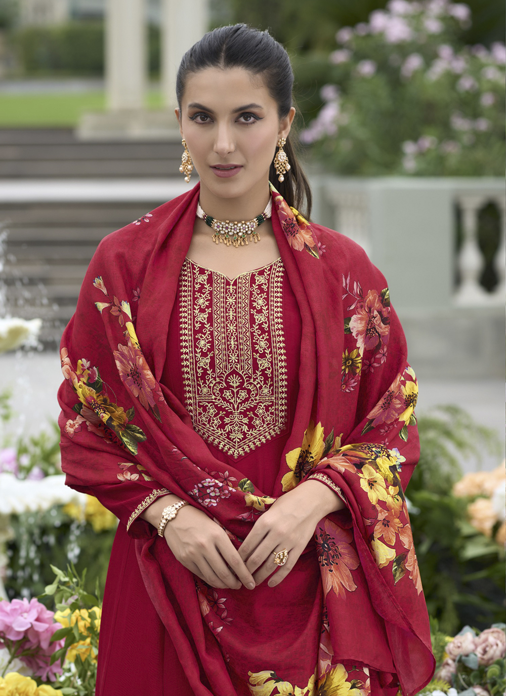 Attractive These Beautiful Looking Readymade Suits.These Top Are Vichitra Silk And Bottom Are Vichitra Silk And Dupatta Are Russion Silk Fabricated.Its Beautified With Jari,Sequance Embroidery Work With Digital Printed Dupatta.