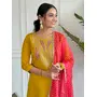 Mustard Color Viscose Fabric Ceremonial Wear Embroidery Work With Printed Kurta Set