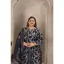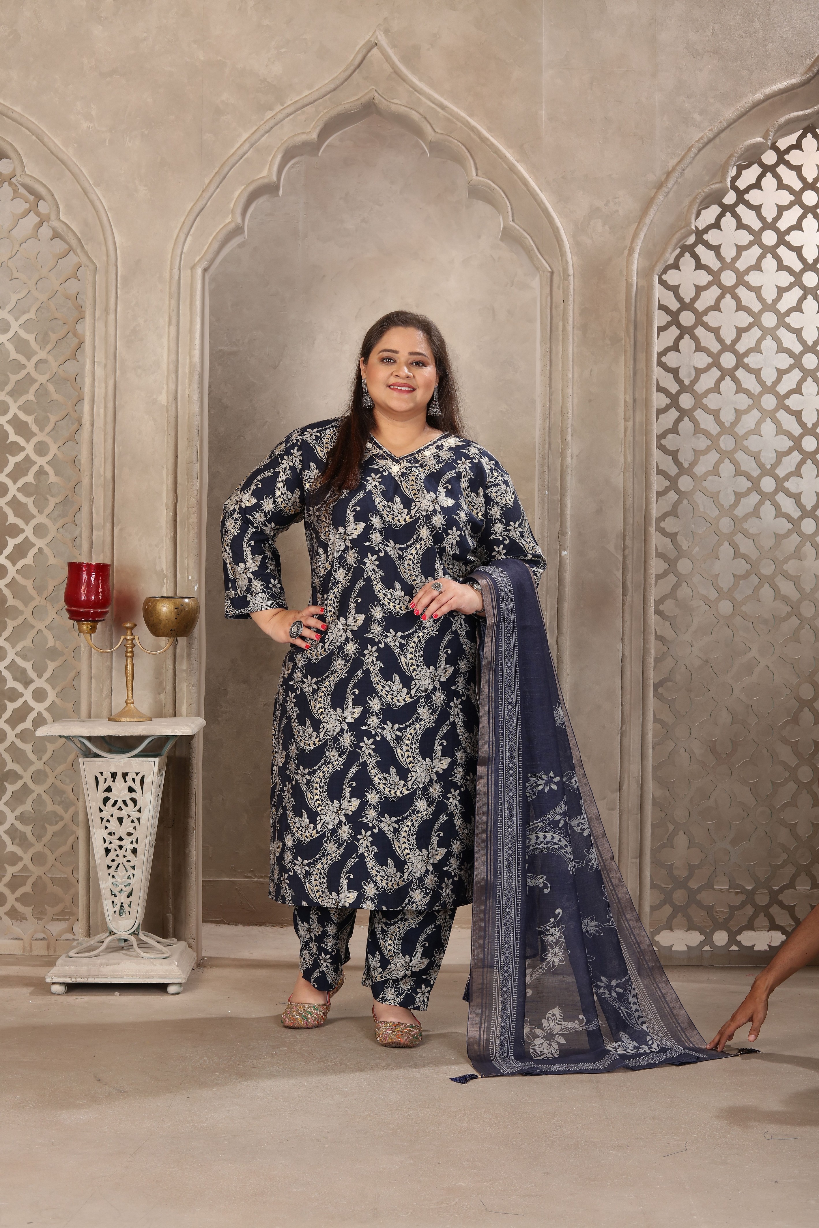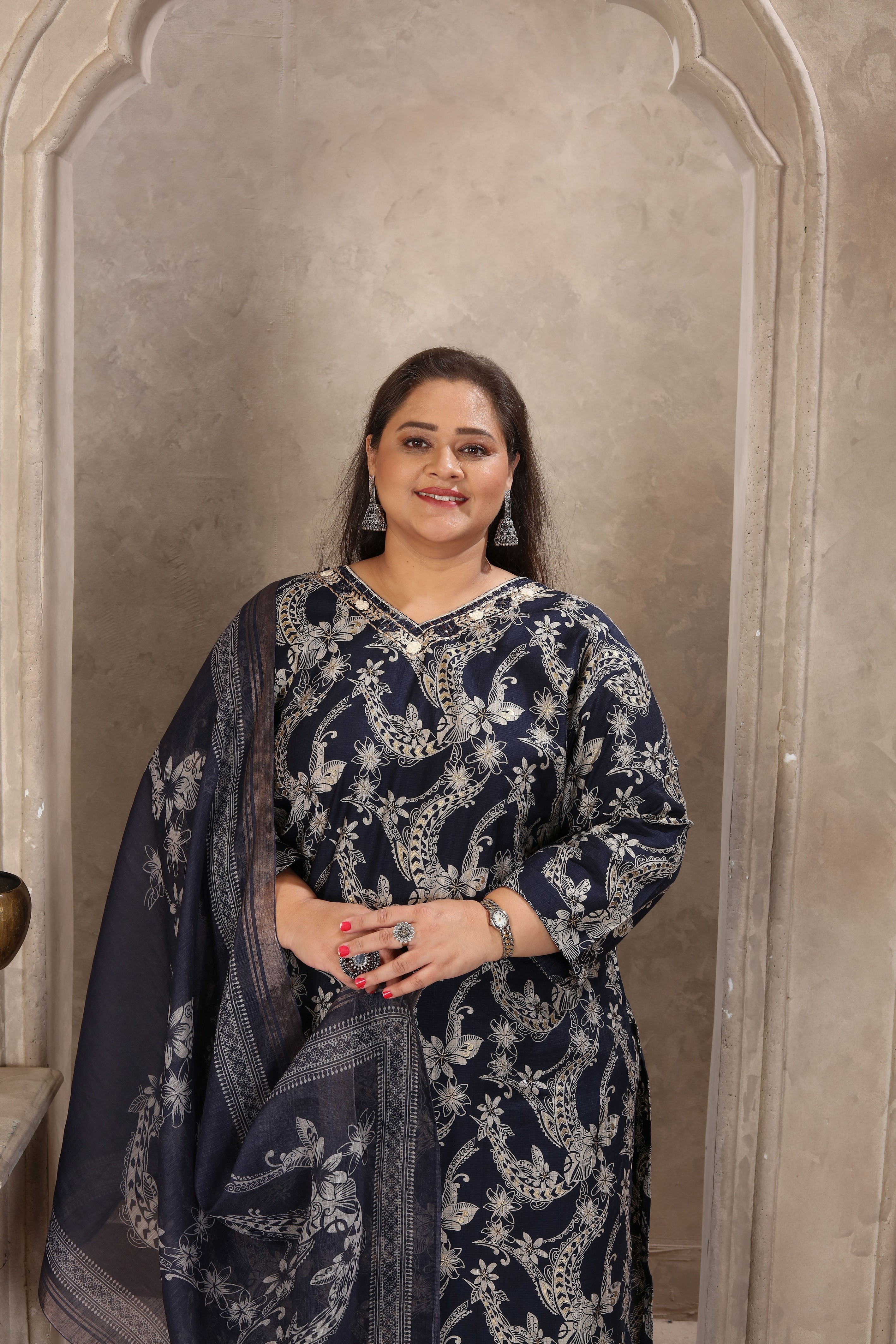 Navy Blue Color Lichi Viscose Fabric Prited Plus Size Kurta Set With Dupatta
