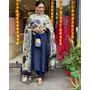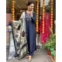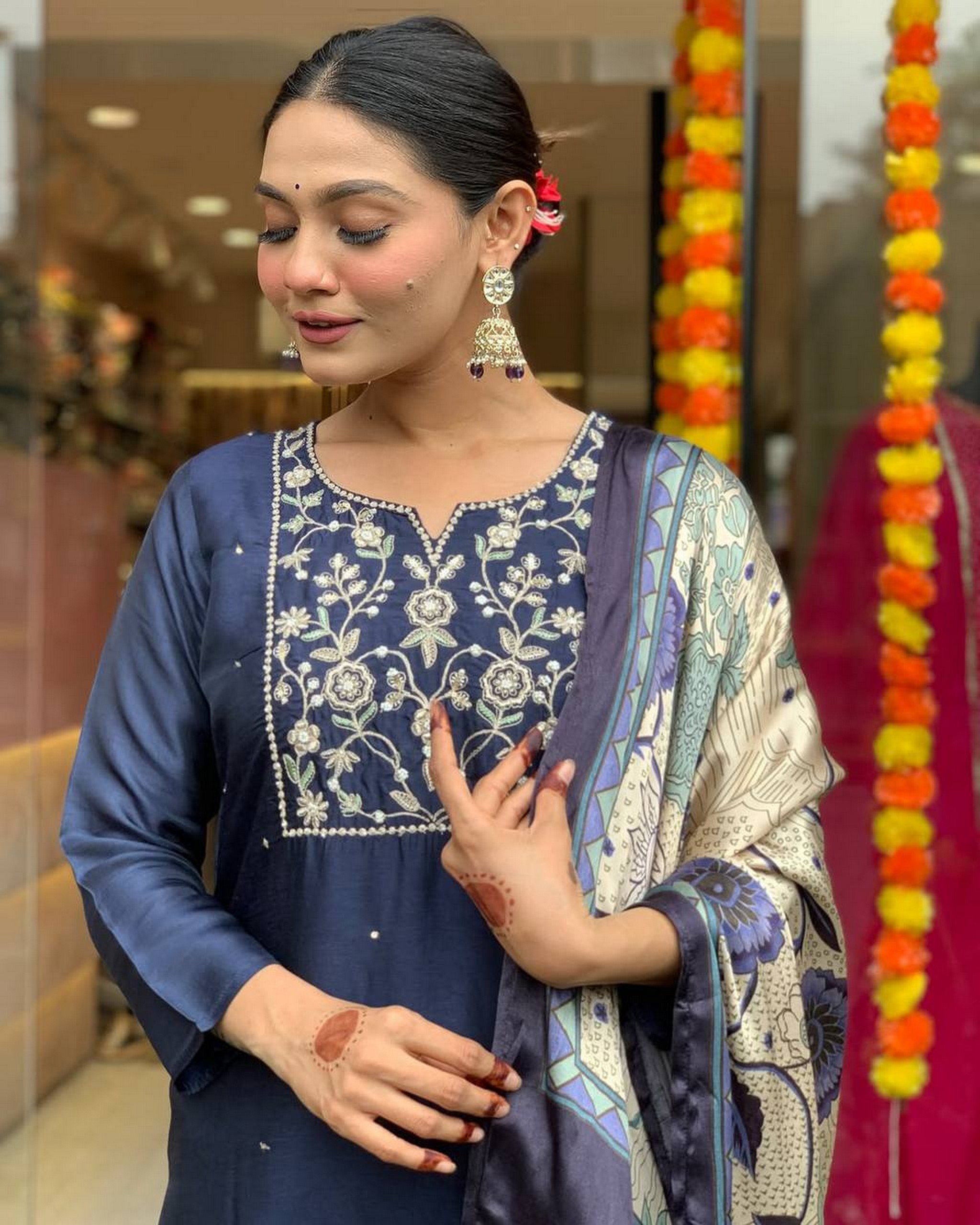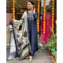 Navy Blue Color Viscose Chanderi Fabric Designer Printed Ethnic Partywear Suit