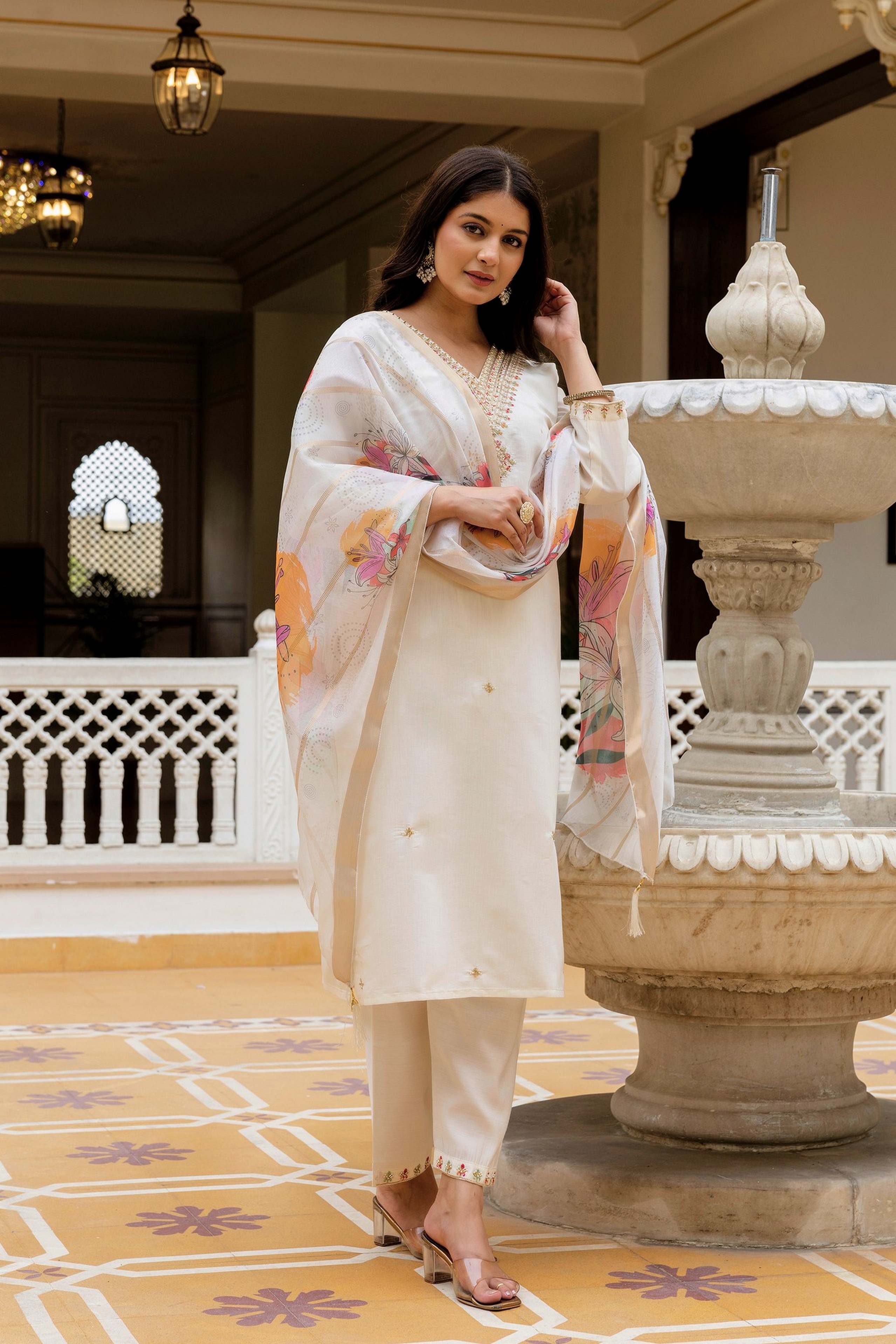 Off White Color Beautiful Viscose Chanderi Fabric Graceful Ceremonial Readymade Salwar Kameez For Girls
