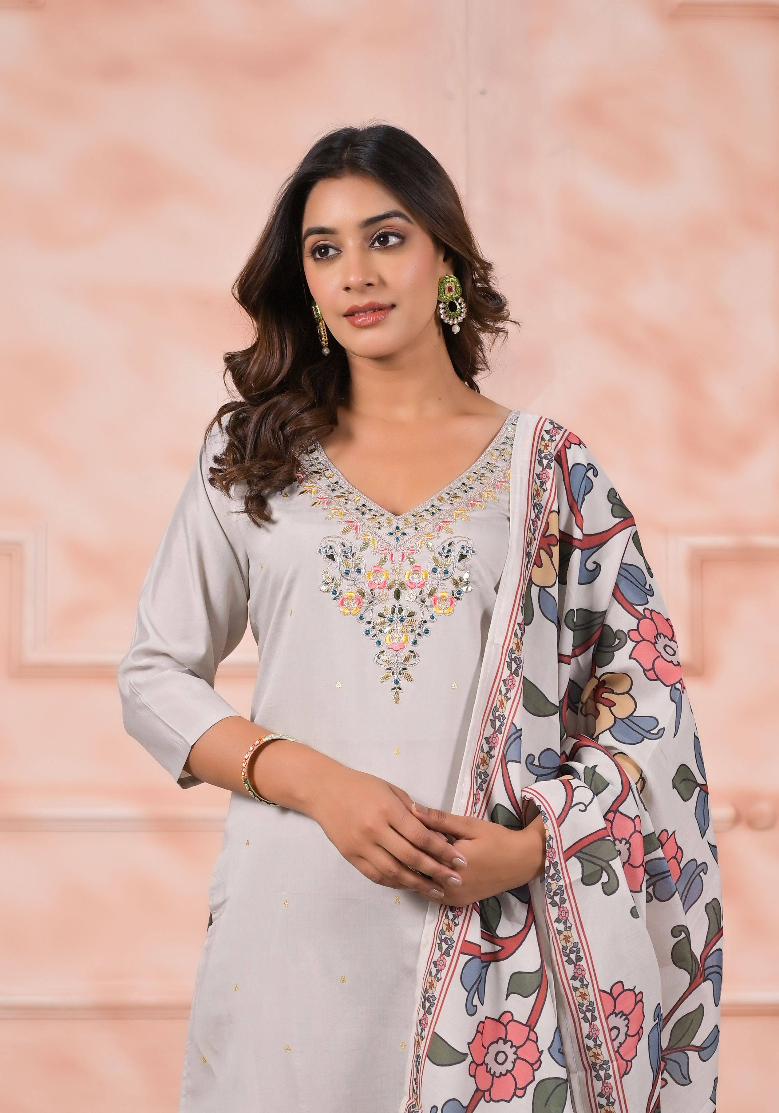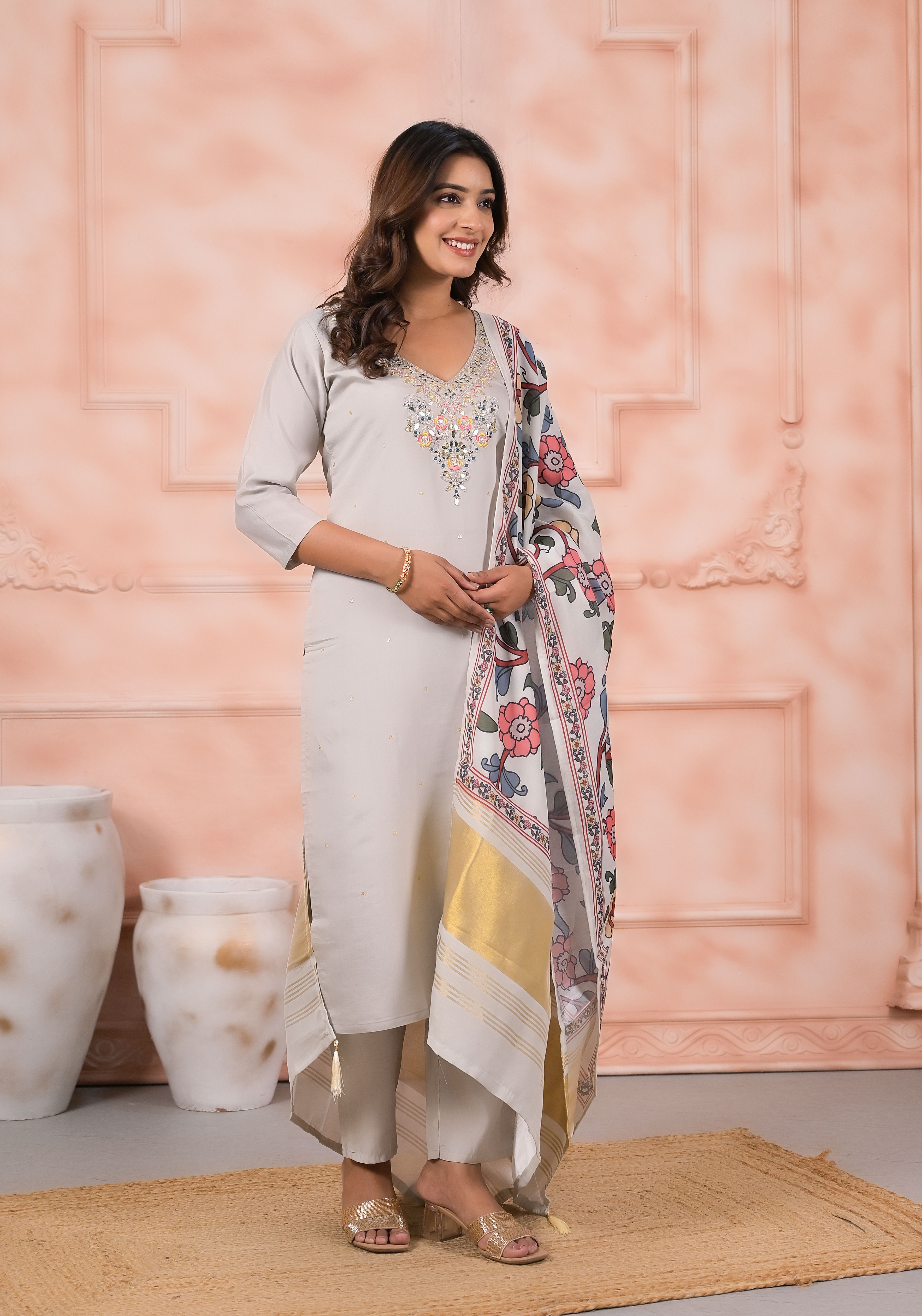 Off White Color Viscose Fabric Designer Embroidery Work Ceremonial Kurta Set With Dupatta