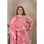 Onion Color Rayon Fabric Prited Plus Size Kurta Set With Dupatta