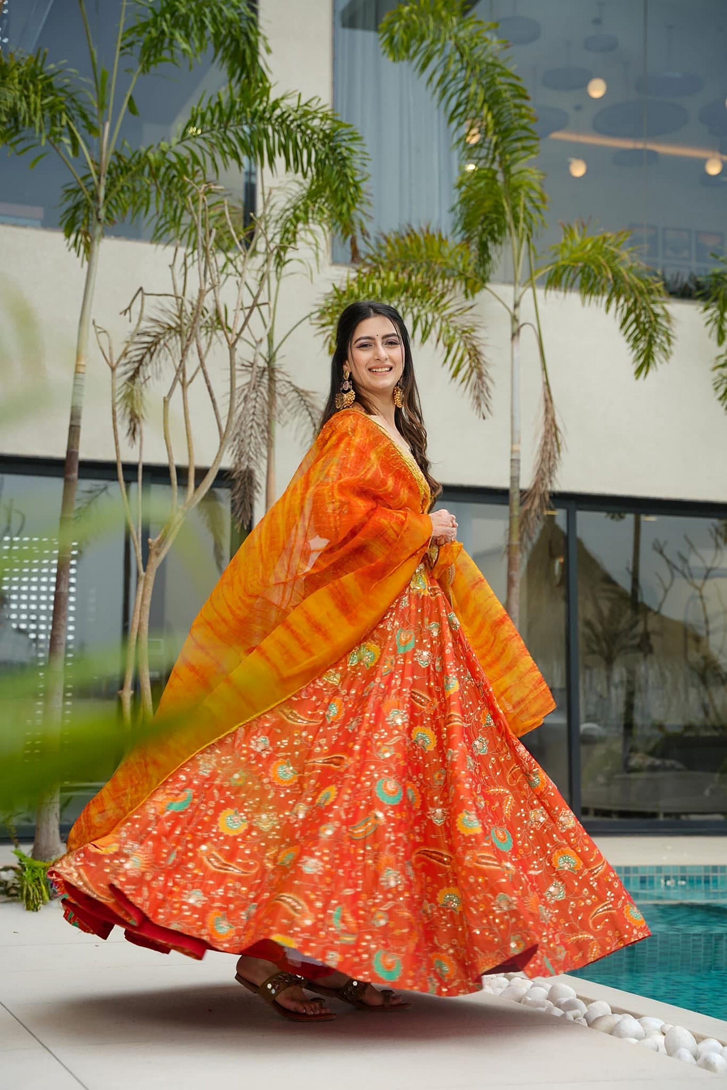 Orange Color Ceremonial Wear Stylish Girlie Gown With Dupatta For Ethnic Looks