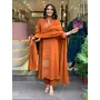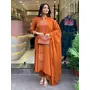 Orange Color Ethnic Chanderi Fabric Party Looks Salwar Kameez For Girls