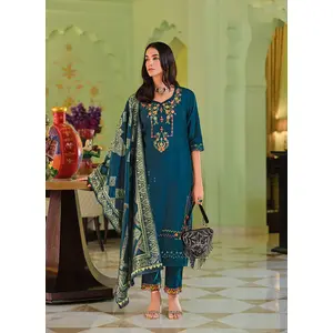 Teal Blue Color Viscose Fabric Woven...