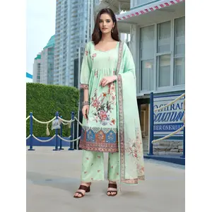 Sea Green Color Linen Fabric Digital...