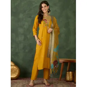 Mustard Color Rayon Fabric Designer...