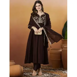 Coffee Color Vichitra Silk Fabric...