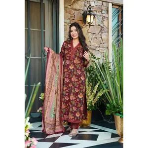 Wine Color Beautiful Printed Muslin...