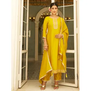 Yellow Color Silk Blend Designer...