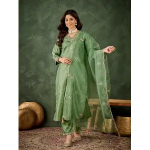 Green Color Smart Silk Blend Fabric...