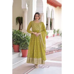 Green Color Silk Blend Fabric Ethnic...