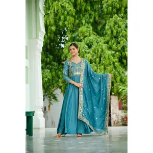 Firozi Color Vichitra Silk Fabric...