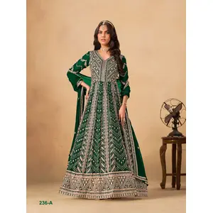 Green Faux Georgette Semi Stitched...