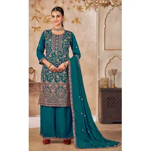 Blue Vichitra Silk Readymade Plazzo...