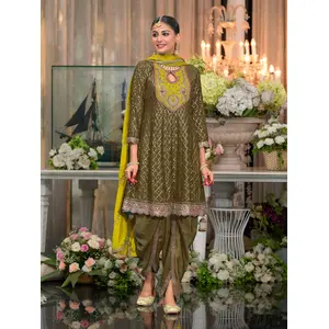 Mehndi Embroderied Silk Stitched...