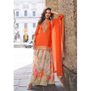Orange heavy chinon silk semi...