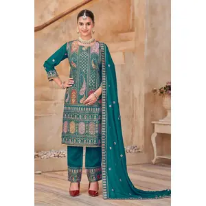 Teal Vichitra Silk Readymade Suit...