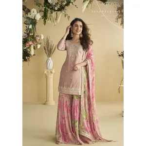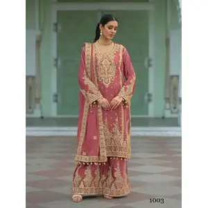 Coral Heavy Chinon Readymade Plazzo...