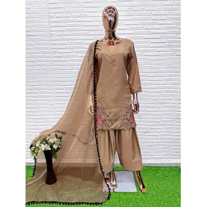 Brown Crape Readymade Salwar Suit...