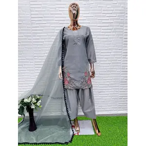 Grey Crape Readymade Salwar Suit with...
