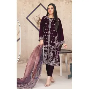 Purple Velvet Semi Stitched Suit with...