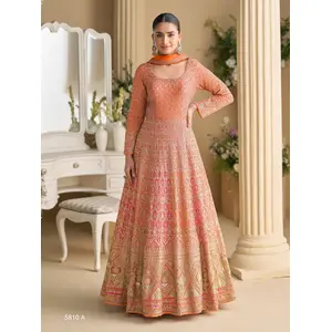 Peach Georgette Readymade Anarkali...