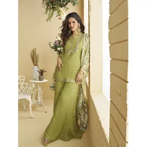 Mehendi Heavy Chinon Readymade Plazzo...