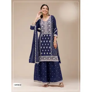 Navy Blue Faux Georgette Semi...