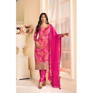 Magenta Chinon Semi Stitched Suit...