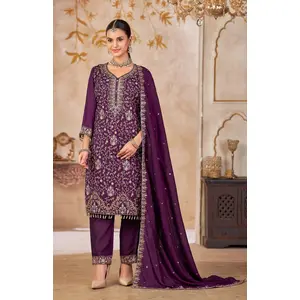 Purple Vichitra Silk Readymade Suit...