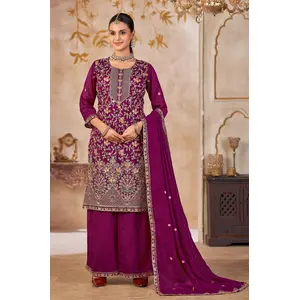Purple Vichitra Silk Readymade Plazzo...