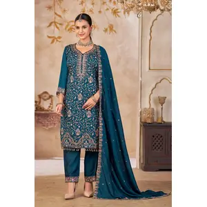 Blue Vichitra Silk Readymade Suit...
