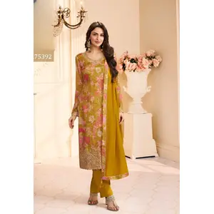 Mustard Chinon Semi Stitched Suit...