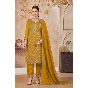 Mustard Vichitra Silk Readymade Suit...