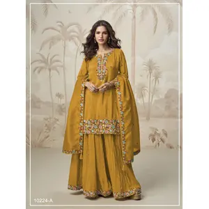 Mustard Simar with Embroidery Multi &...