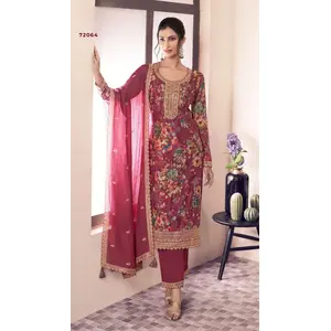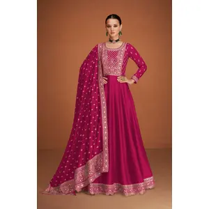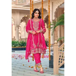 Rani Pink embroidered Chinon Squence...