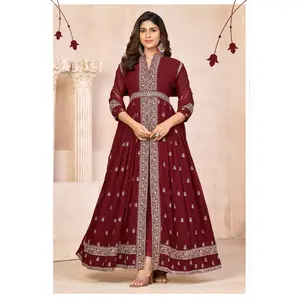 Maroon Embroidered Faux Georgette...
