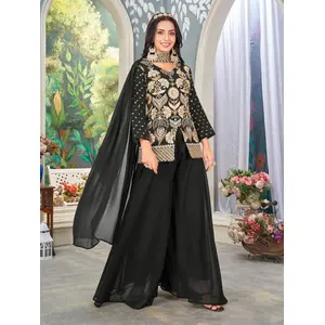 Black Embroidered Faux Georgette Semi...