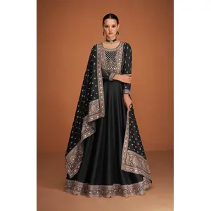 Black Designer Embroidered Heavy...