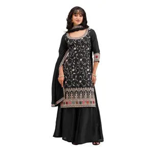 Black vichitra semi stitched suit...
