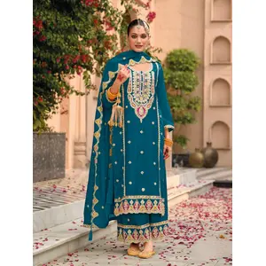 Teal vichitra semi stitched suit with...