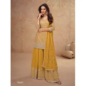 Yellow Chinon Sequence Embroidered...