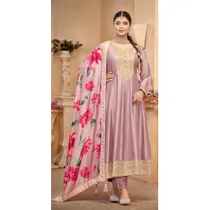 Purple Shimmar Readymade Suit with...